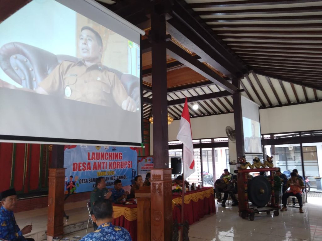 Acara dibuka oleh Kepala Desa Sanggrahan Bp. Sutarman, kemudian dilanjutkan sambutan oleh Perwakilan Inspektorat Daerah Kab Sukoharjo , Camat Grogol, dan Dinas PMD. Acara ini dihadiri oleh Kepala Desa se Kecamatan Grogol, Ketua RT/RW, Perwakilan PKK, dan Perwakilan Karang Taruna serta seluruh pimpinan lembaga2 desa di Desa Sanggrahan, kemudian dilanjutkan dengan pemukulan Gong sebagai tanda telah di Desa Sanggrahan siap sebagai Desa Anti Korupsi.